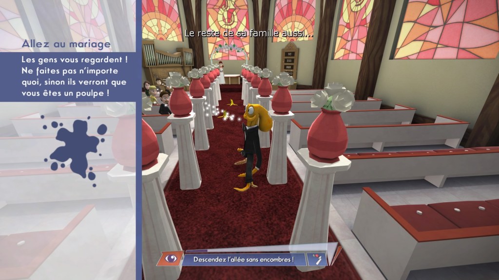 Avec tout le respect que je dois au vieux poulpe, Octodad est une œuvre absurde. Le père de famille tentaculaire a vu le jour en 2010. S’il a gagné en esthétisme et en maniabilité dans Dadliest Catch (2014), il évolue dans un univers toujours aussi absurde, qui se plaît à contourner toute forme de raison ou de logique. Le principe du jeu repose sur le fait que personne, ou presque, ne s’aperçoive qu’Octodad est un poulpe. Et pour cause, il porte un costume trois pièces ! Sa femme et ses enfants eux-mêmes ne sont pas au courant de la supercherie. Sa condition de céphalopode va l’entraîner dans des situations toutes plus chaotiques les unes que les autres. Octodad descend d’une longue lignée de personnages muets dont l’humour va se manifester par des comiques de geste et de situation. Il est difficile de ne pas céder au charme de cet univers décomplexé. Dans Octodad, l’humour n’est pas seulement assuré par la narration, mais aussi et surtout par le gameplay. Le jeu réclame des actions a priori banales, qui deviennent pourtant cauchemardesques, lorsque tu incarnes un poulpe ! Il te faudra manier plusieurs touches et te familiariser avec tes tentacules, pour avancer sans glisser et sans te coincer un membre dans le premier objet venu. Le moindre effort devient un numéro d’équilibriste, et la maladresse d’Octodad est telle qu’il n’est pas rare qu’il détruise tout sur son passage. Or, cela ne fait que contribuer à l’humour absurde du jeu. Lorsqu’Octodad fait ses courses, la boutique semble avoir été dévastée par une tempête, et pourtant, rares sont ceux à s’en étonner. L’absurde est poussé à son paroxysme dans la mesure où, plus le joueur est mauvais, plus le niveau peut être drôle ! Cet aspect du gameplay est toutefois à double-tranchant. En effet, cette maniabilité volontairement désastreuse peut devenir frustrante, rendant certaines phases du jeu plus pénibles que ludiques !